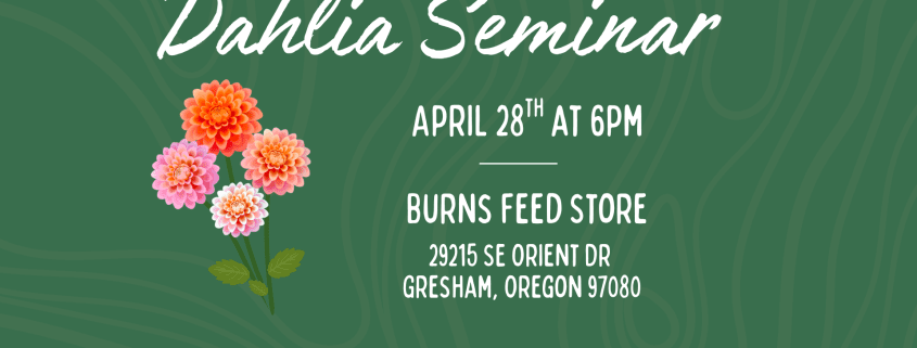 Join us at Burns Feed Store in Gresham, Oregon for a special Dahlia Seminar on Tuesday, April 28th, 2026.