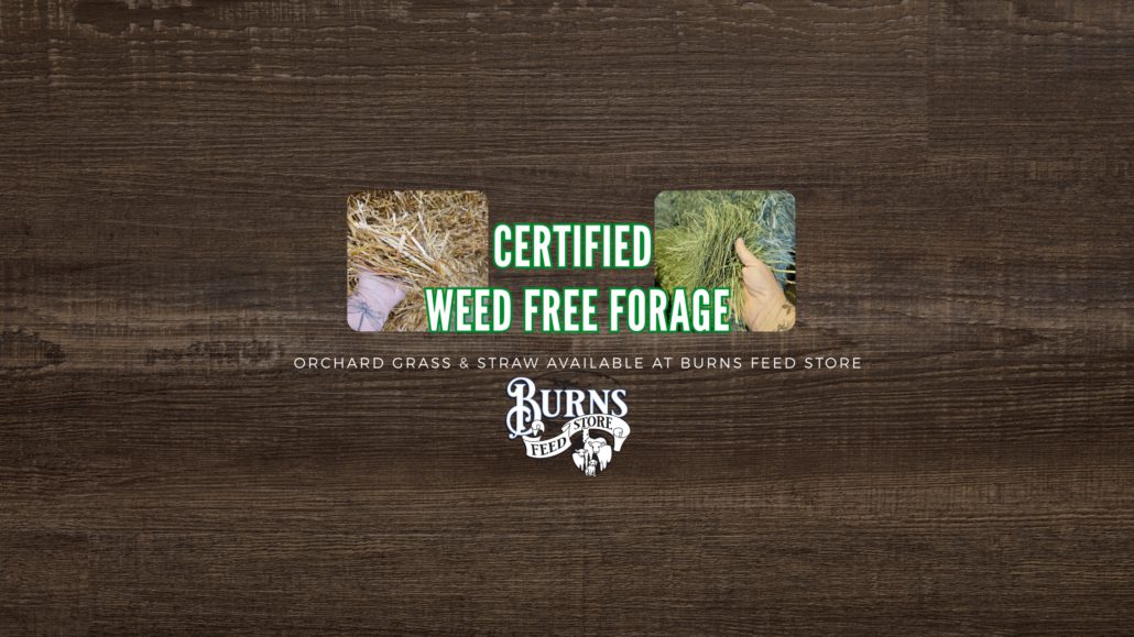 At Burns Feed Store, we currently have in stock Certified Weed Free Orchard Grass as well as a Certified Weed Free Straw.