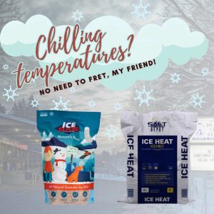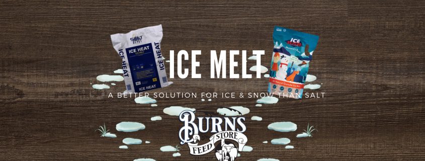 - Stop by Burns Feed Store and pick up Ice Heat Ice Melt or Ice Slicer (Pet Safe) so you’re