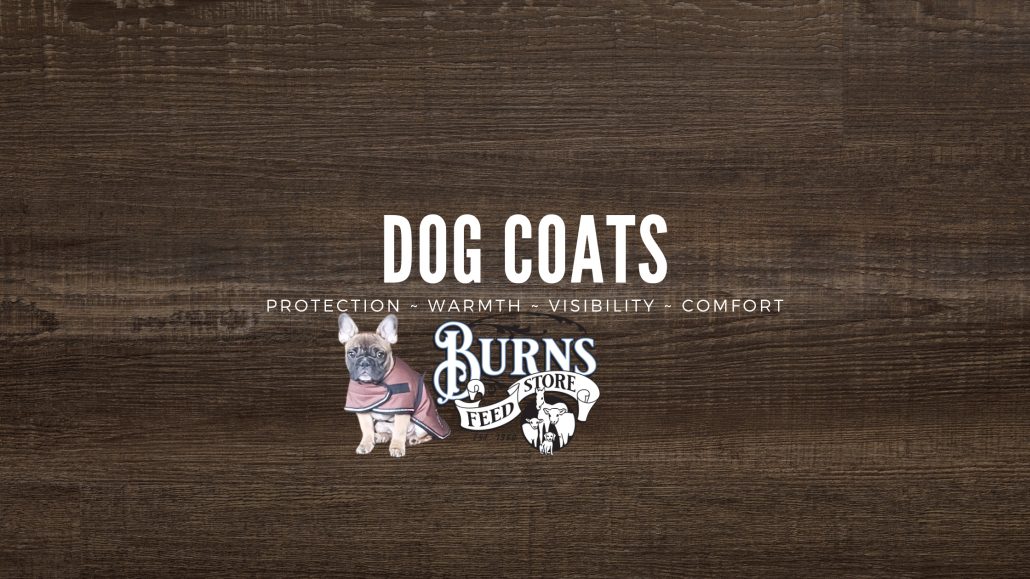 Stop by Burns Feed Store to explore our selection of sweaters, raincoats, hoodies, Sherpa-lined or smooth-lined waterproof blankets. We offer a variety of colors and sizes! If possible, bring your dog to the store to try on various sizes and styles to guarantee the best fit and comfort.